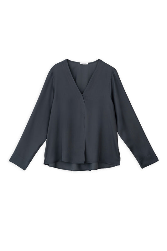 SATIN ECOVERO V NECK BLOUSE